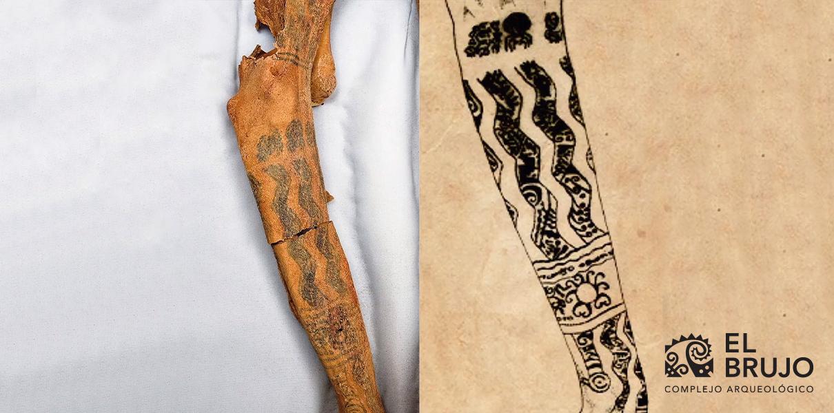 The tattoos of the Lady of Cao were found especially on forearms, hands and feet, these represented figures of snakes and spiders, both linked to the fertility of the earth and water; jaguars, which symbolizes the lunar animal; and geometric figures, which strengthen the idea that she was also engaged in spiritual activities, and other political-religious offices.